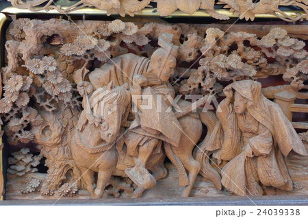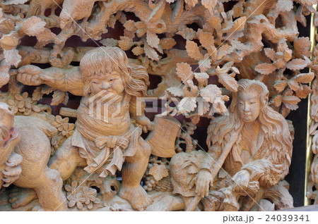 信州 松本の文化財 須々岐水神社の祭りの舞台 荒町の舞台の彫刻 立川流彫刻の舞台(山車)は長野県宝