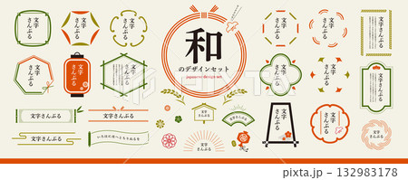 和、和風のデザイン素材セット/フレーム、装飾、見出し、年賀素材