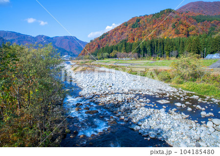 魚野川 立柄橋からの眺め 秋景色 新潟県湯沢町