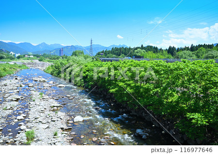 清流魚野川 立柄橋から上流 山・川の風景 新潟県湯沢町