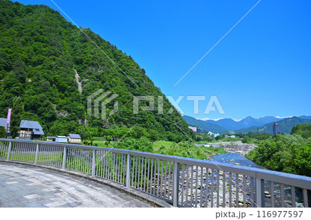 立柄橋からの風景 穴沢河川公園付近 魚野川 新潟県湯沢町