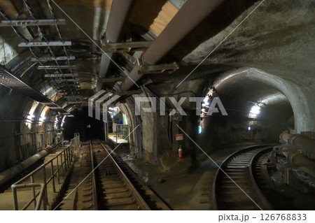 青森県 青函トンネル 竜飛斜坑線 体験坑道駅に降りてゆくケーブルカー