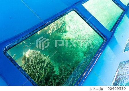 高知県土佐清水市 竜串湾の見残し海岸の船着場付近のグラスボート