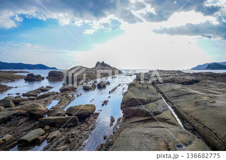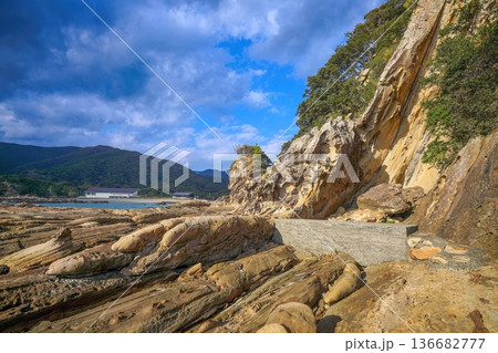 高知県足摺岬 竜串海岸の奇岩と青空 広大な海岸風景
