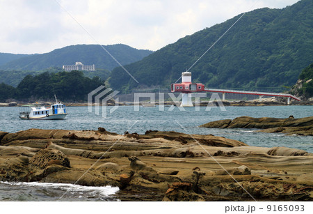 県土佐清水市 竜串湾の奇岩の続く見残し海岸と船着場のグラスボート