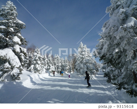 霧氷に覆われたスキー場林間コース (長野県、竜王スキーパーク)