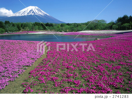 「山梨県」富士山と芝桜の美しい風景