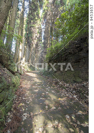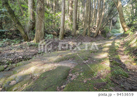 杉林の中の龍門司坂の石畳