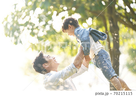 happy asian father and son