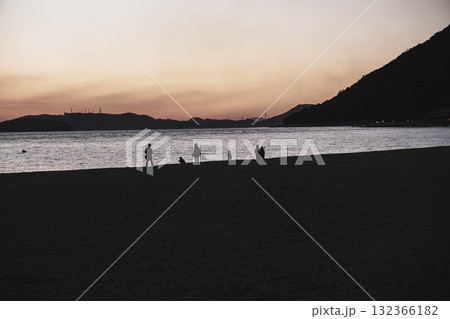 [渋川海岸]夕日が美しい海岸を散歩する人たち