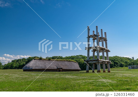 青森県青森市 三内丸山遺跡の大型竪穴建物と大型掘立柱建物
