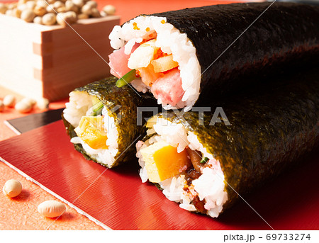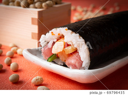 節分の恵方巻 節分 福豆 煎り大豆 太巻き