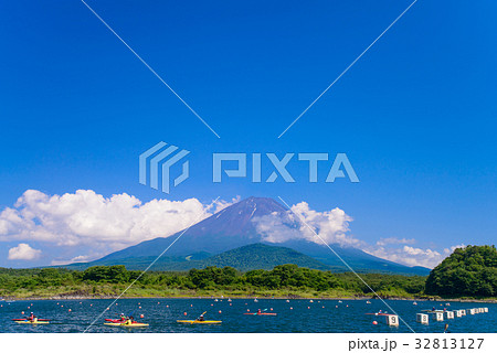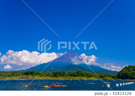 精進湖のカヌー競技会と富士山