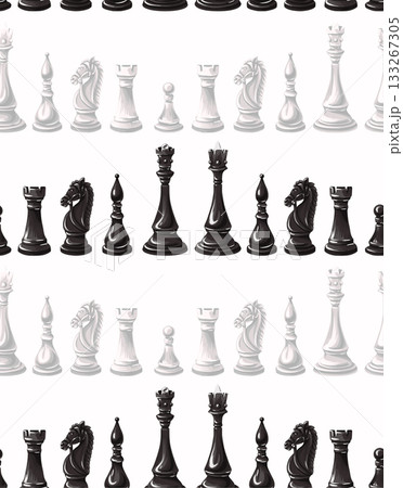 Seamless Chess Pieces Vector Pattern Featuring Classic Black and White King Queen Rook Knights