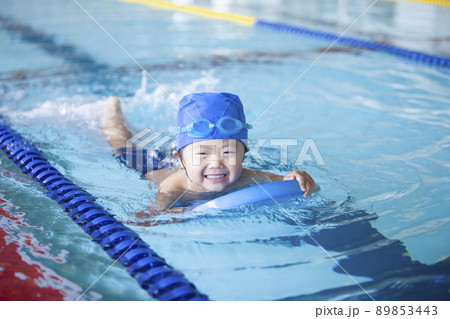 スイミングスクールで泳ぐ男の子