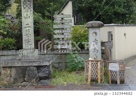 京都・嵯峨野の二尊院近くに置かれた竹で編まれたゴミ箱