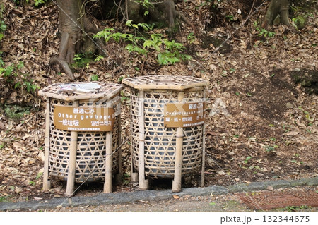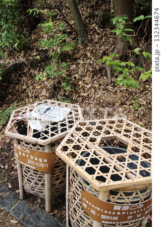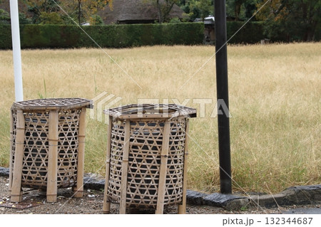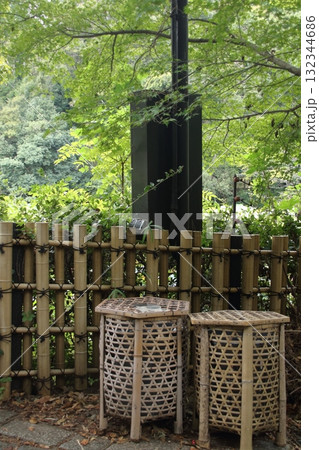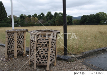 観光地に置かれた竹で編んだゴミ箱(京都・嵯峨野)