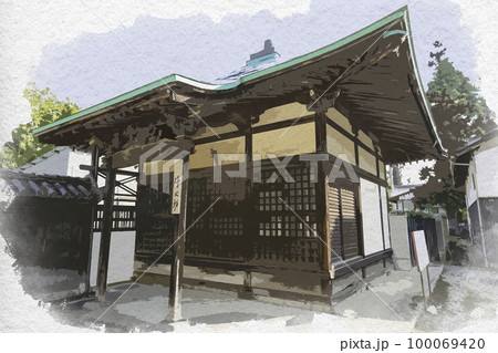 水彩画風 當麻寺 竹之坊 奈良県葛城市