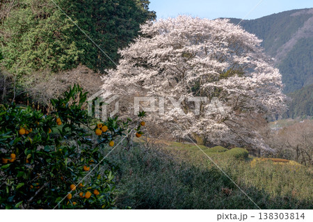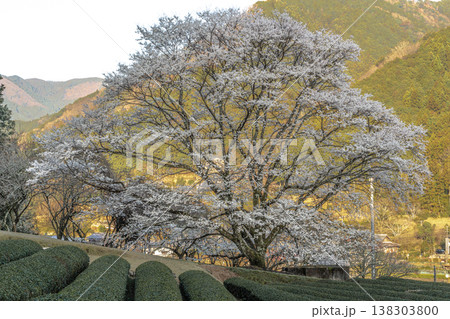 茶畑の中にある一本の淡墨桜
