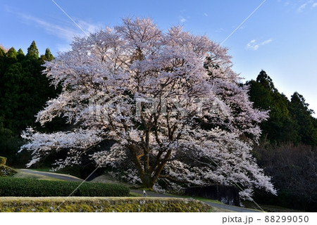 竹原地区の茶畑と淡墨桜