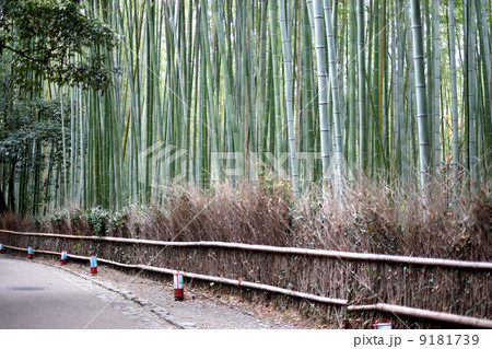 京都の町並み 嵐山・嵯峨野竹林の小径と旅行者