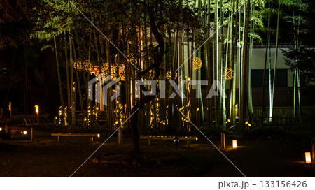 竹林を彩る竹あかりライトアップの夜景/幻想的に輝く和のアート空間
