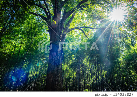 竹林に差し込む太陽光線