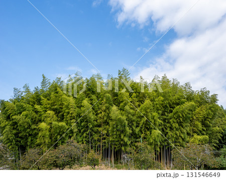 青空に映える竹林の風景(千葉県柏市・あけぼの山農業公園)