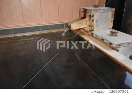 温泉 旅館 お風呂 ひのき 露天 湯舟 湯船 お湯 注ぎ口 果実の森