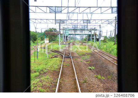 JR北海道、室蘭本線の登別駅から白老駅までの普通列車車窓風景(2023年夏曇り空)