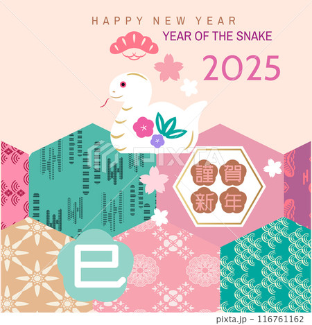 Happy Chinese New Year 2025 Snake zodiac sign Japanese holiday template card