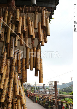 広島県 竹原 民家の軒先に吊り下げられた風情ある竹細工
