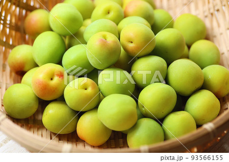 天日干し中の梅の実のクローズアップ(梅干し・土用干し)