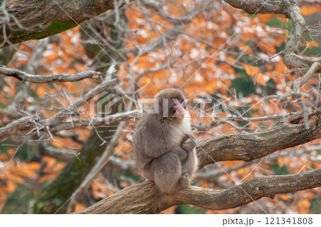 木の上にすわるニホンザル 嵐山モンキーパークいわたやま