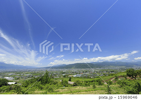 山梨県南巨摩郡富士川町から俯瞰した甲府盆地の風景