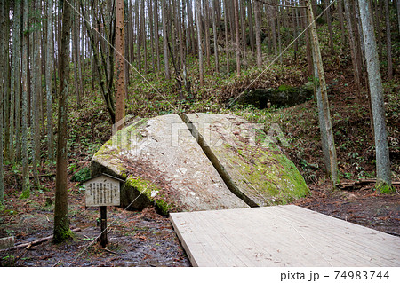 奈良県奈良市天石立神社境内柳生戸岩谷の巨石一刀石。修行中切断した風の刀。両手。鬼滅の刃聖地巡礼。