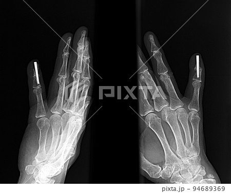 手の指のレントゲン写真 へバーデン結節の治療 関節固定術