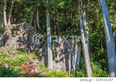 長命寺境内 針葉樹林中の大岩 滋賀県近江八幡市