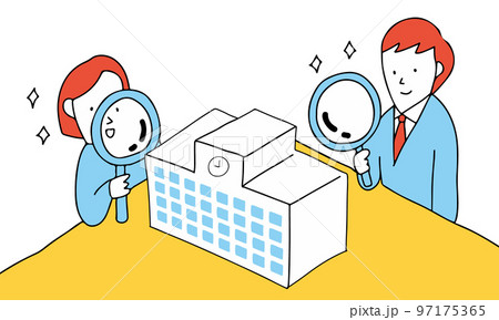 どちらの学校を選ぶべきか?志望校を検討する学生のイラスト