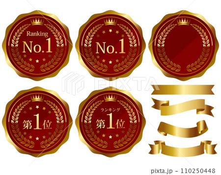 ランキング第1位 メダルとリボンのランクアイコンセット No.1 赤 レッド