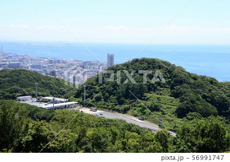 神戸 鉢伏山山頂から見た神戸市街地と須磨浦山上遊園(北西方向、初秋)