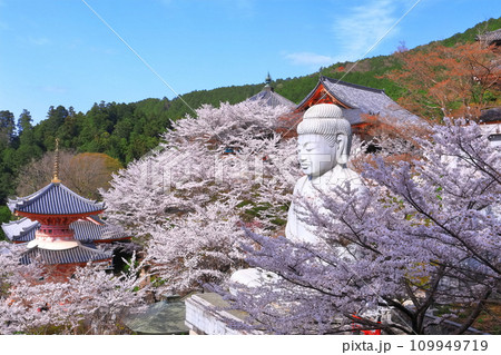 【奈良県】桜が満開の壺阪寺(大観音石像)
