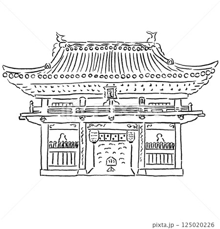 観光/四国徳島県の「一番札所」_手描き線画カットイラスト・モノクロ