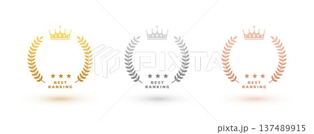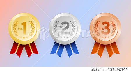 top ranking number 1st, 2nd and 3rd victory medal in set