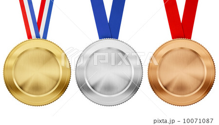 gold, silver, bronze medals with ribbon isolated on white