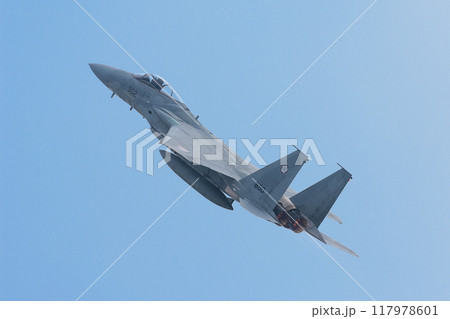 旋回する航空自衛隊第305飛行隊F-15Jイーグル