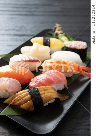 寿司、和食の握りずし、黒背景で撮影