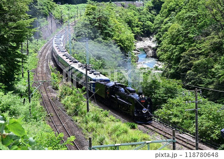 名勝諏訪峡を通過する 上越線 蒸気機関車
