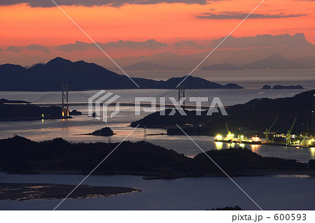 瀬戸内海のしまなみの夜明け 広島県三原市竜王山展望台