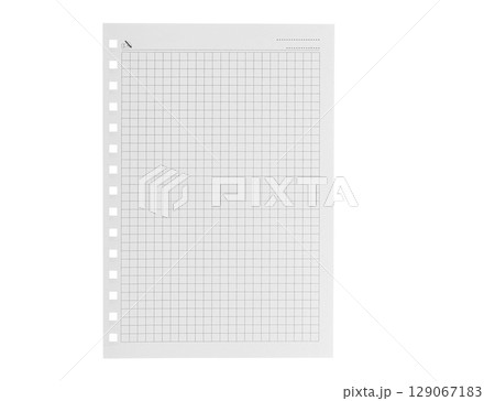 Plaid texture on white paper. A sheet of chequered paper on a white background